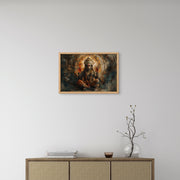 The medium-sized (18W x 24H inches) Hanuman Abstract Wall Decor Canvas Painting adds an artistic and spiritual atmosphere to any spot in your home or business. The painting is landscape-oriented and is set in a rectangular shape, and it is adorned with a natural wood frame in a wooden texture finish. The overall weight is approximately 500g, and its overall effect can not only help boast an elegant feeling but also brings serenity and calmness to its surrounding space.