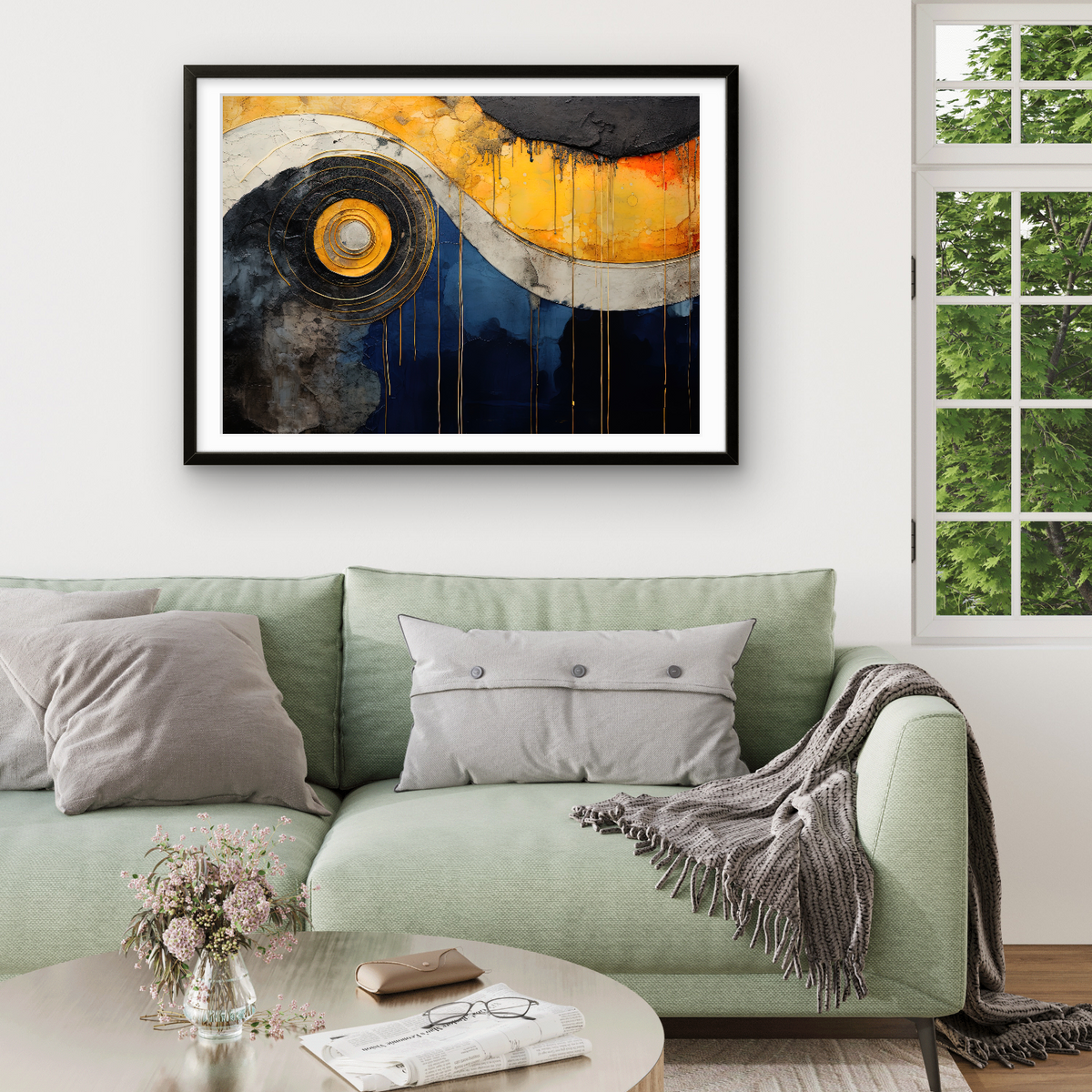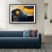 The modern abstract wall decor canvas painting adds an edgy and modern touch to your space. It measures 36W x 30H inches in a landscape shape and is framed in a durable engineered wood frame with black duco paint finish. The printed canvas is premium quality and can highlight details and colours. Also, this piece is lightweight, making for easy hanging and display.