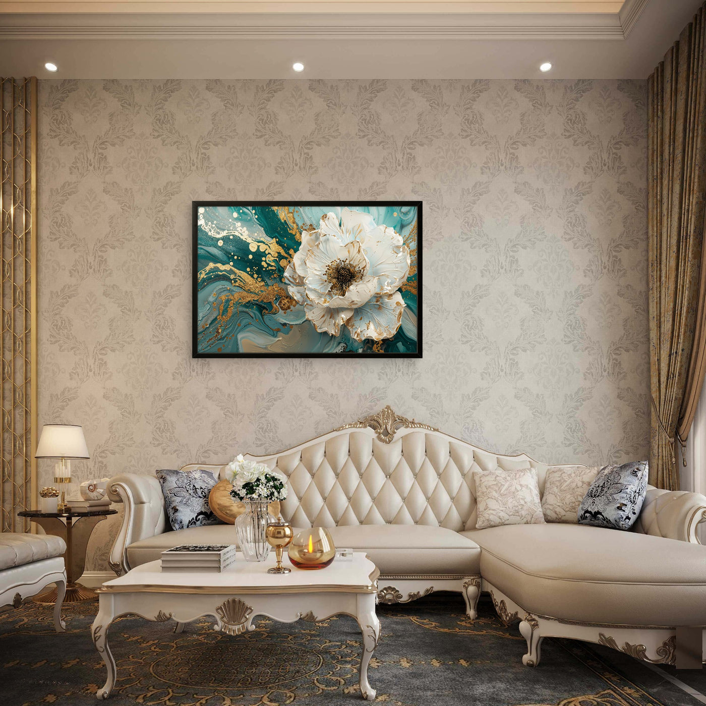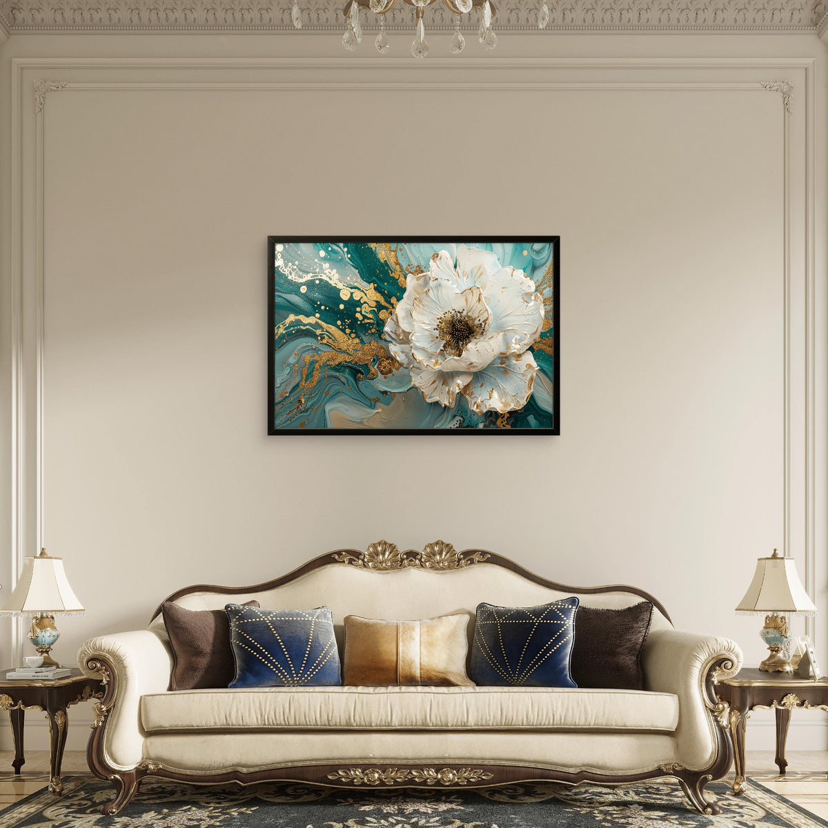This Flowers Abstract Wall Decor Canvas Painting, measuring 36W x 30H inches in size, adds a striking floral character to the décor of any room. The canvas is designed in a rectangular landscape orientation and features a black engineered wood frame. It is lightweight (approximately 500g) amplifying its artful and aesthetically modern charm.