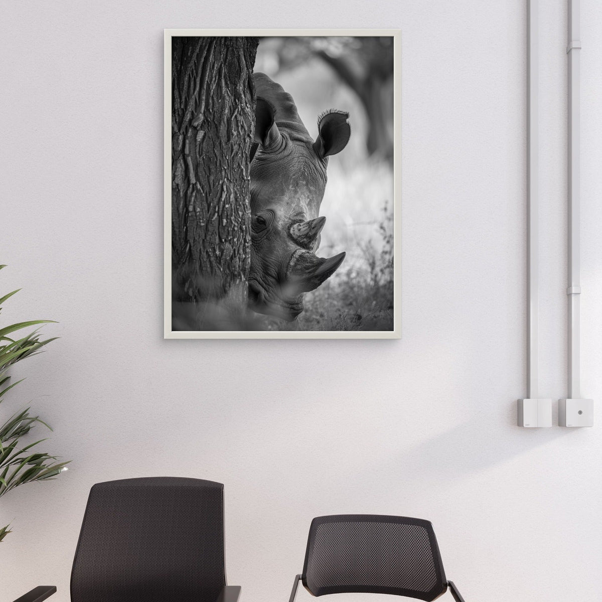 Rhino Behind Tree - Large - 24W x 30H Inches