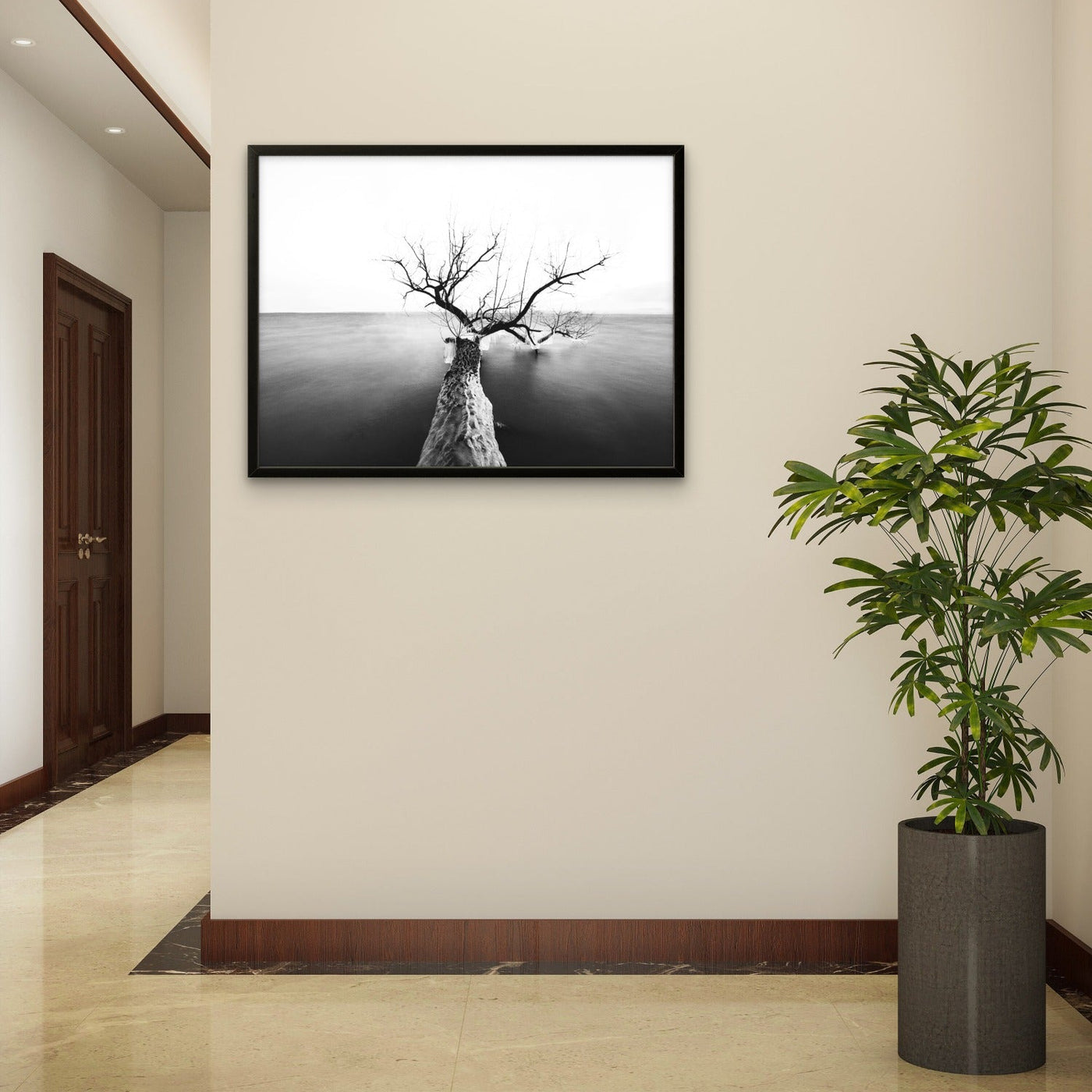 This is a large, dark, abstract wall art piece that measures 24W by 24H inches. It adds a contemporary, elegant, and creative touch to living rooms, offices, or creative spaces when printed on premium canvas with fine detail and framed in black engineered wood.