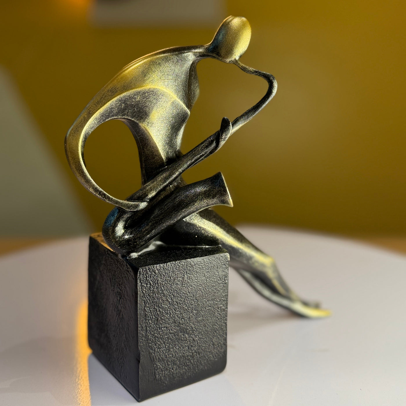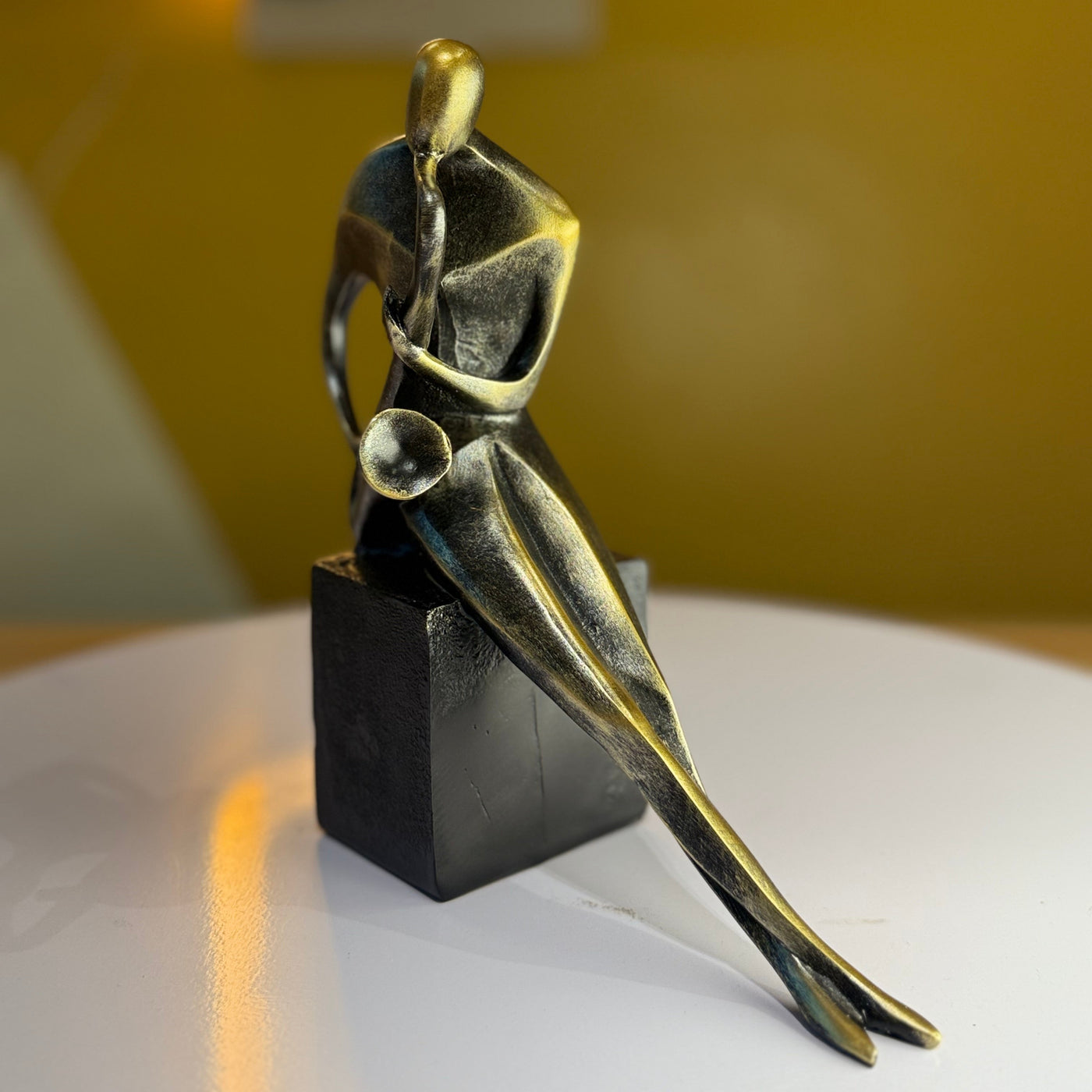 This is a beautifully designed Golden Saxophone décor piece that adds a classy and artistic touch to your space. The detailed clay saxophone in a rich golden finish, paired with a black wooden frame, creates a classy and eye-catching look. It’s perfect for music lovers or anyone who enjoys unique décor with meaning. Made with a sturdy wooden base  with a small size of 8W x 8.5H inches and weighing around 250 gm, it fits easily on shelves, desks, or side tables, adding charm without taking up much space.