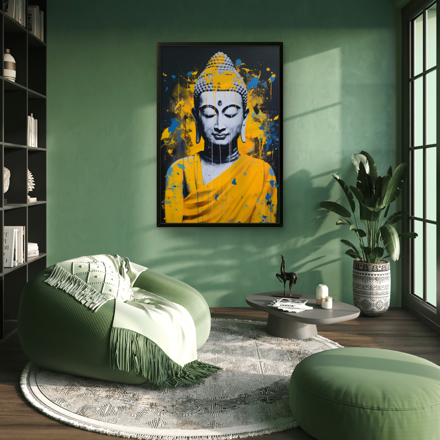 Gautam Bhuddha Yellow Peace art Painting on Canvas