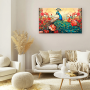 This Peacock Modern Art Canvas Painting showcases high-quality 3D printing on premium canvas, set in an elegant wooden frame. Landscape-oriented and rectangular, it enhances living rooms, bedrooms, or offices with vibrant colors and contemporary charm, making any wall a stunning focal centerpiece.