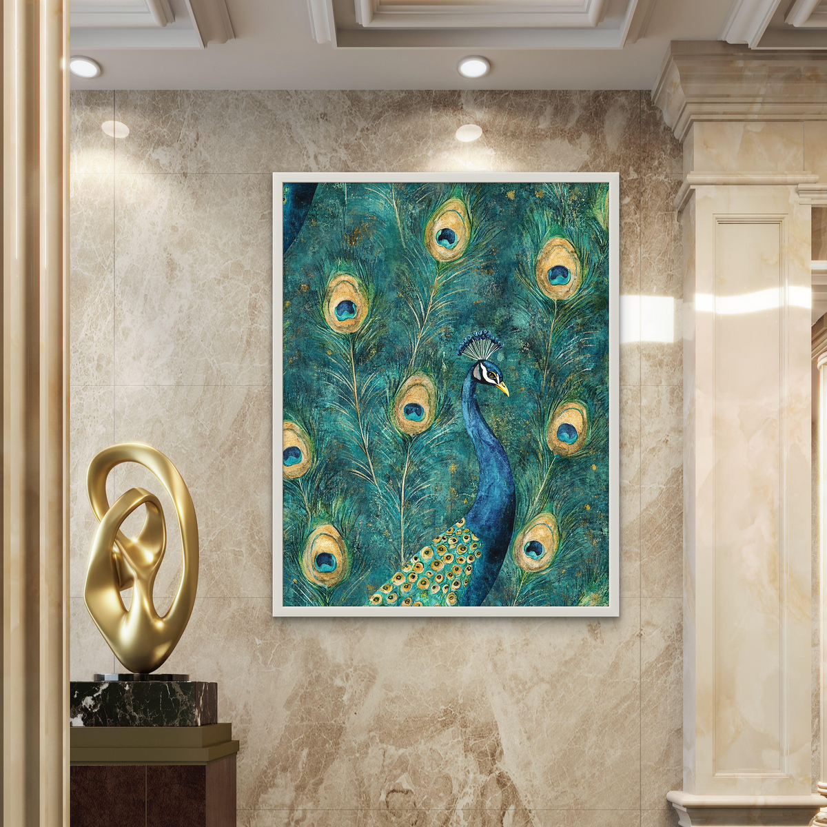 The Peacock Modern Art Canvas Painting utilizes the best quality 3D printing on high-quality canvas, beautifully framed in a natural wooden finish. It boasts a vertical, rectangular design that can enhance the charm and modern elegance of the living room, bedroom, or office for any wall. You have a bright, contemporary focal point.