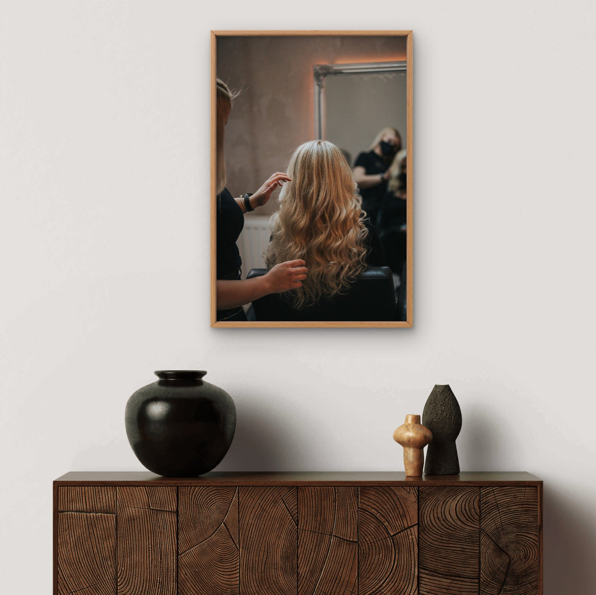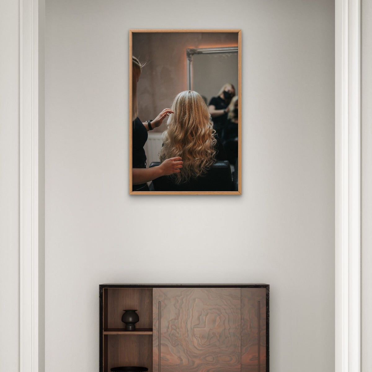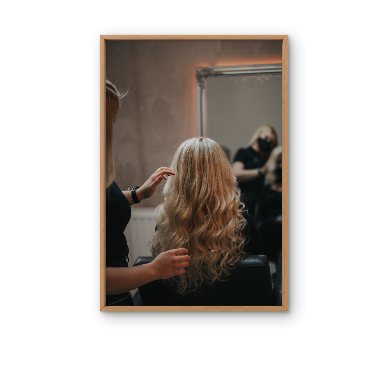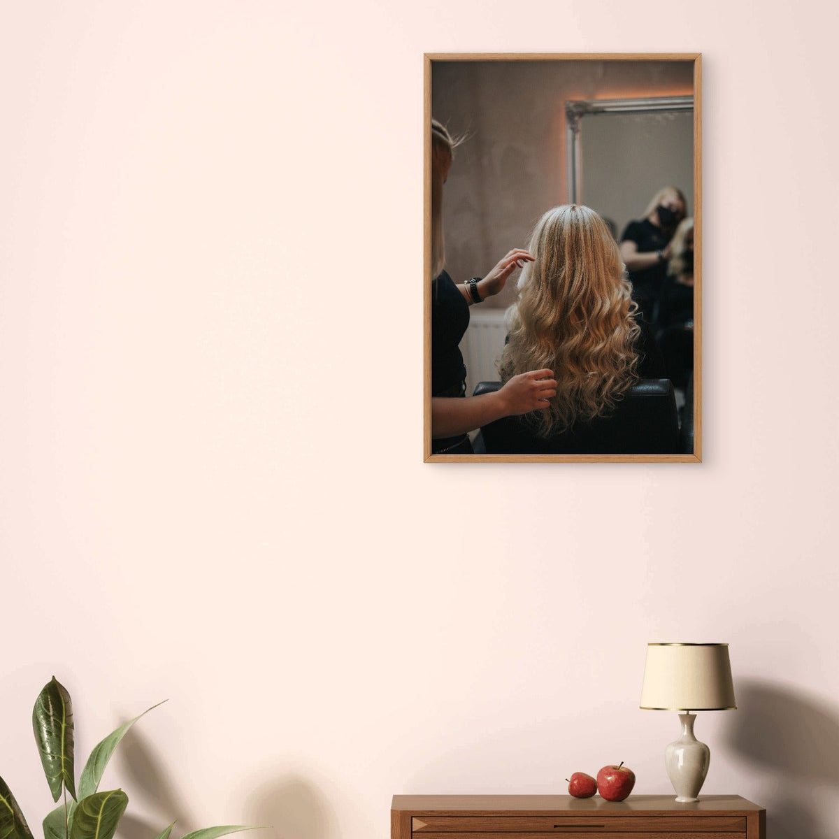This Hair Style Wall Decor Canvas Painting of 24W x 30H inches is made to elevate your spaces with a touch of artistic elegance. The wall art hanging is designed with a rectangular portrait shape and a durable natural wood frame with a warm wood texture. It is lightweight with a total weight of 500g, making it easy to hang. This Hair Style wall art has a perfect shape while being a stylish touch to your home, salon, or studio.
