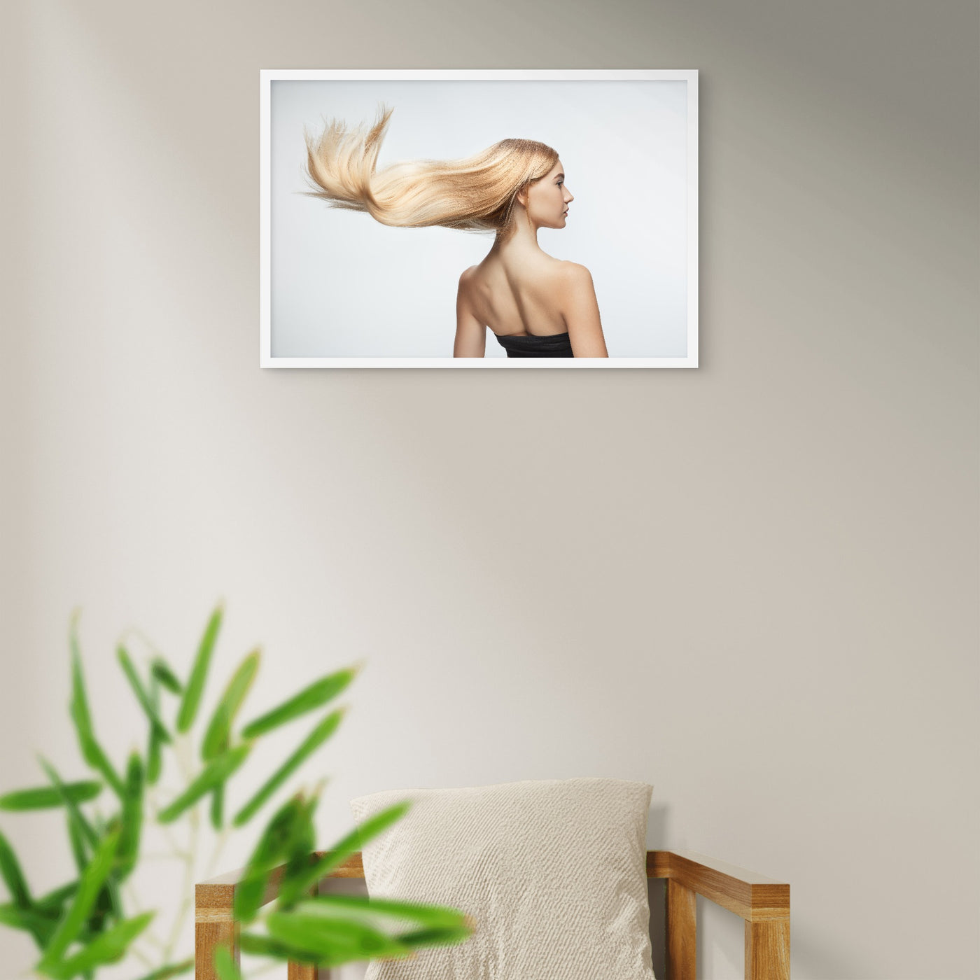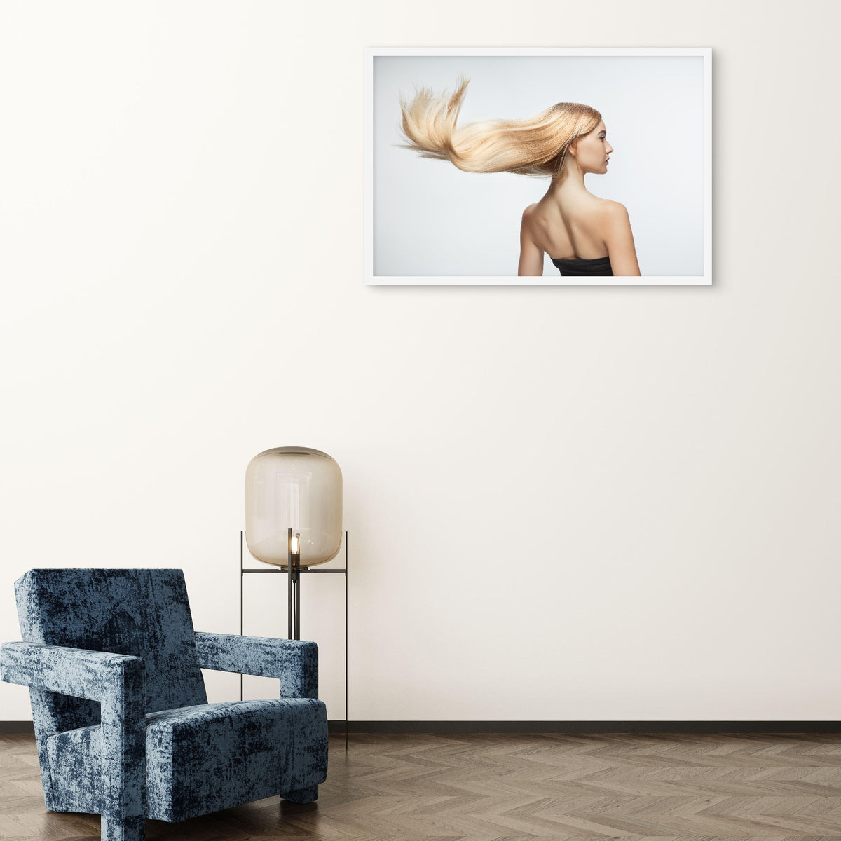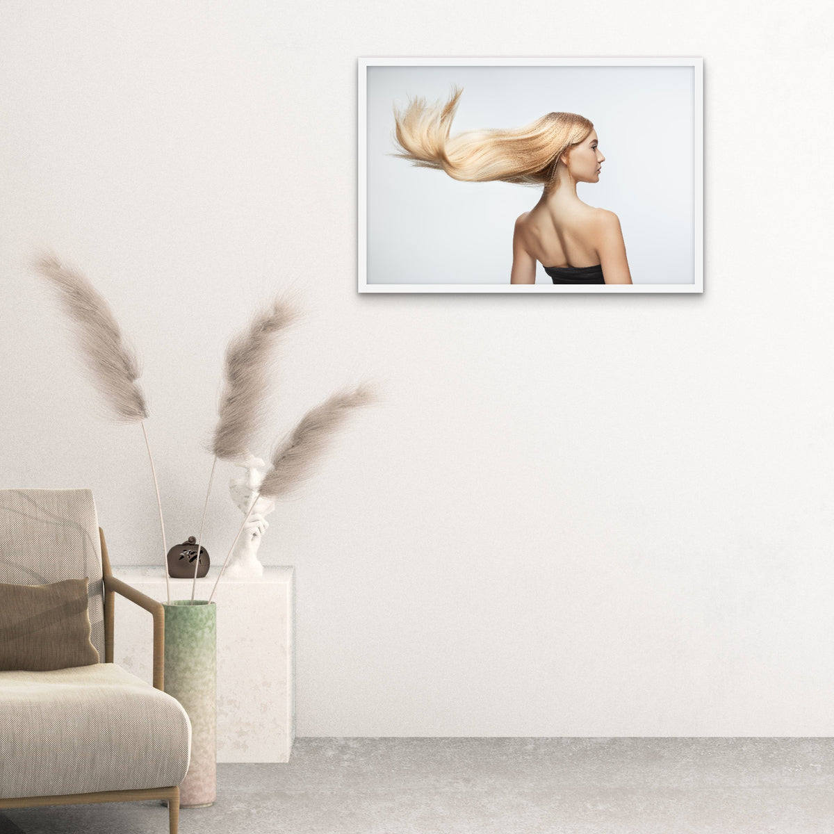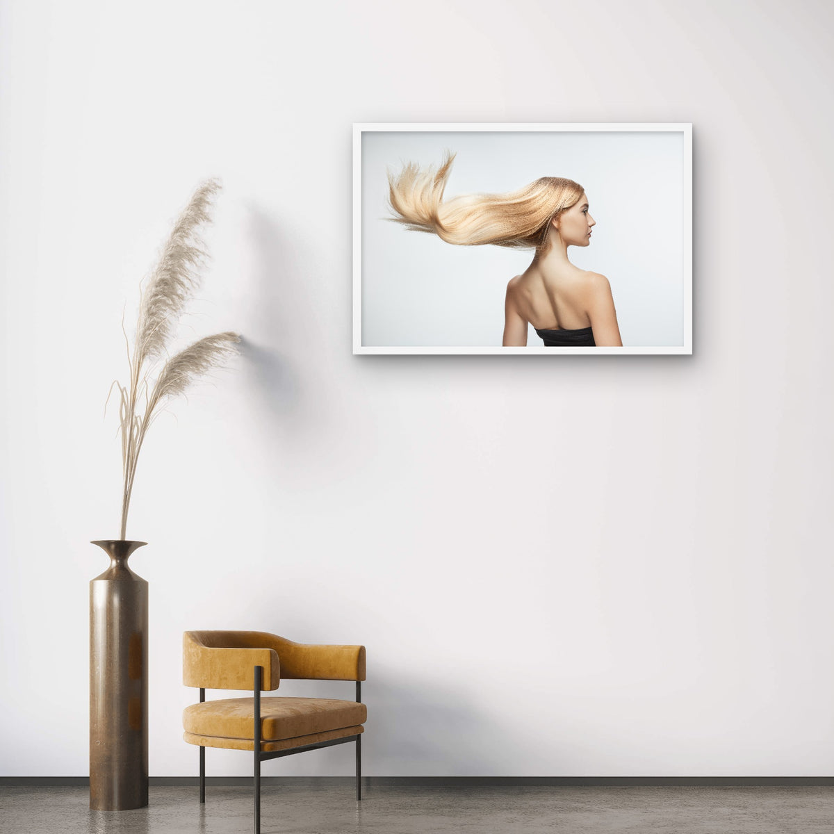 The Hair Style Wall Decor Canvas Painting features a simple rectangular landscape design. The painting has a frame made from durable engineered wood that is shiny white. The available size is 24W x 18H inches, and the canvas is lightweight at 500g so it is easy to install. Whether placed in a child's bedroom or other sleek, modern space, the Hair Style Wall Decor Canvas Painting adds style to the room.