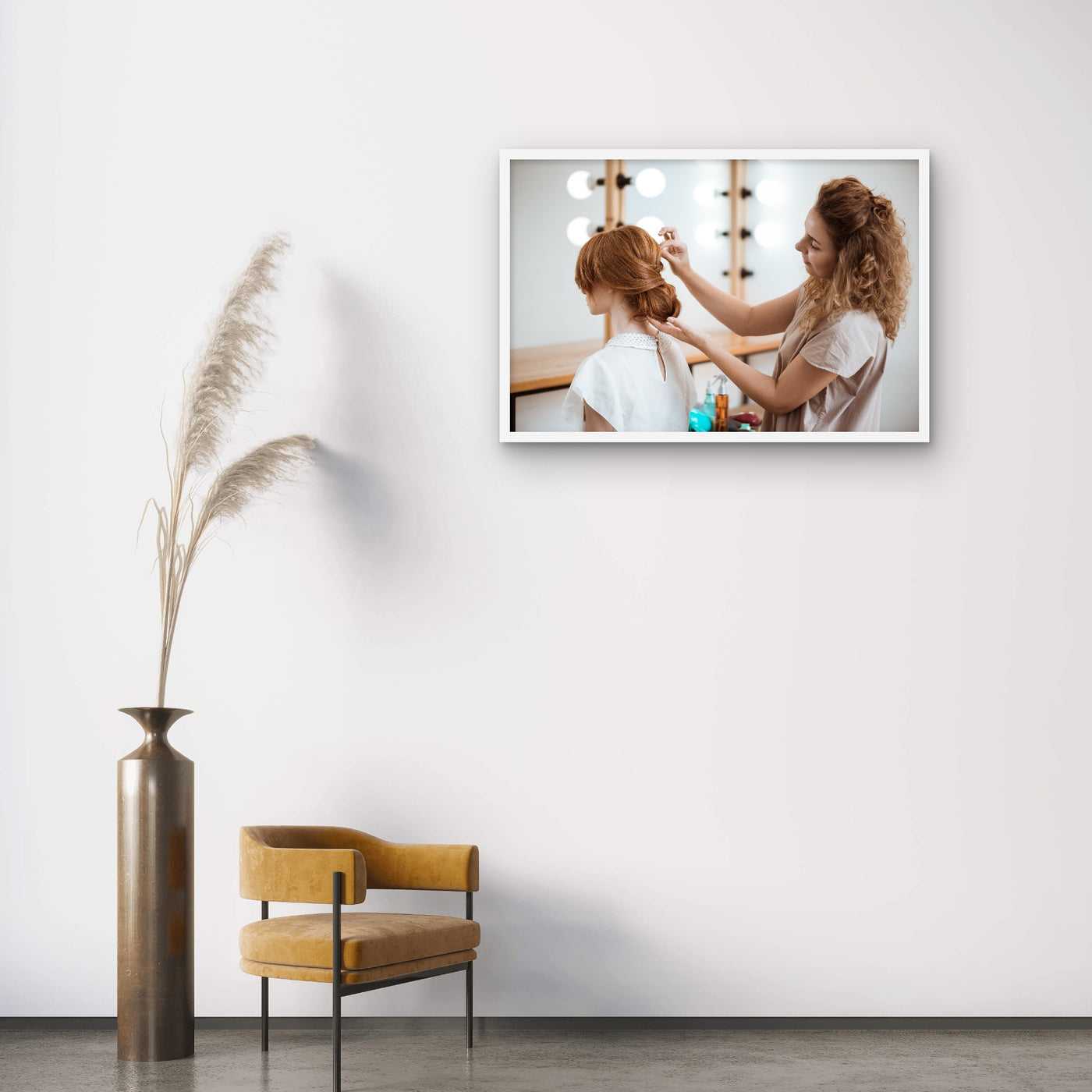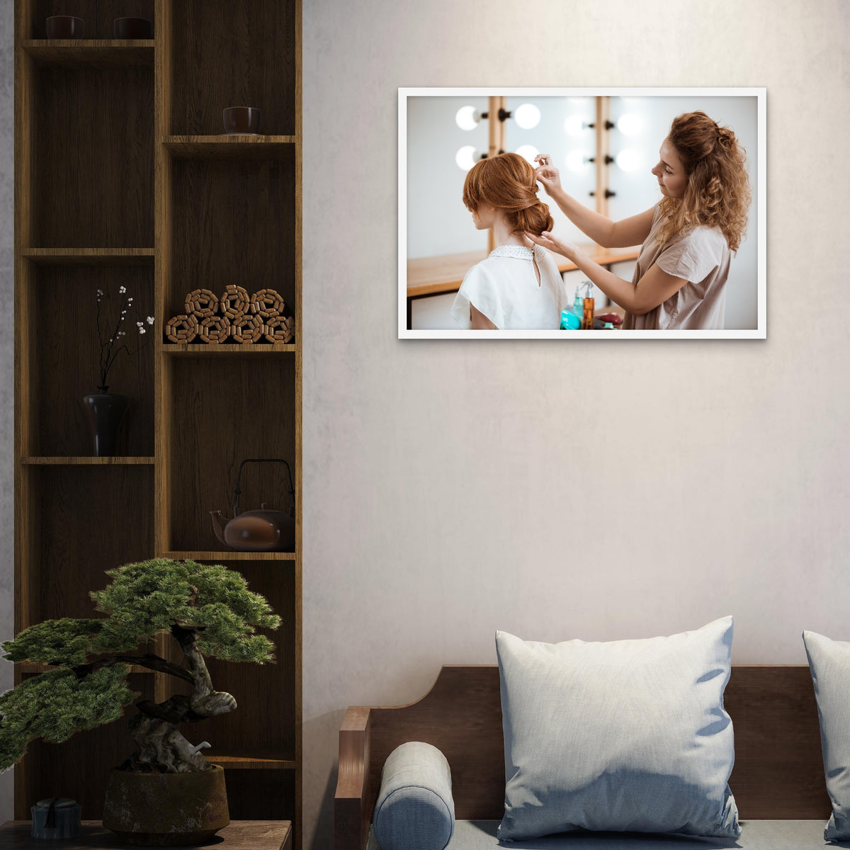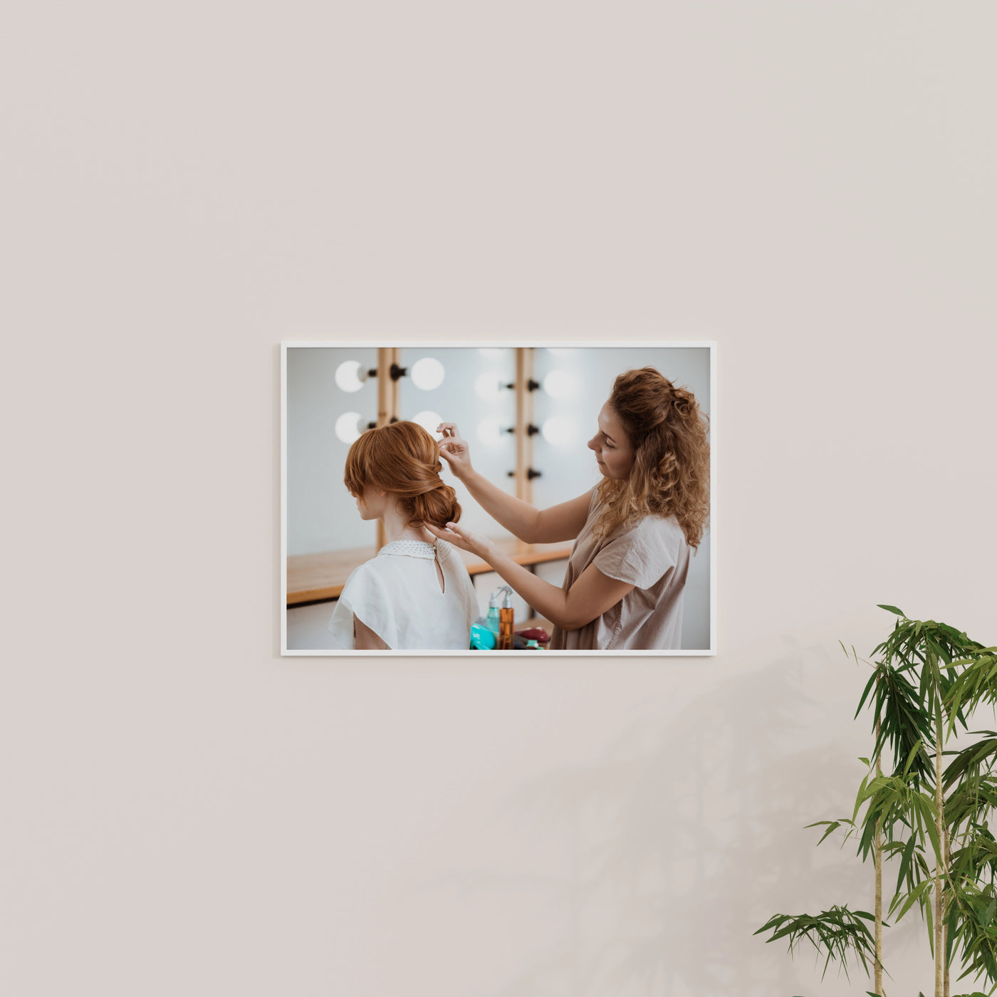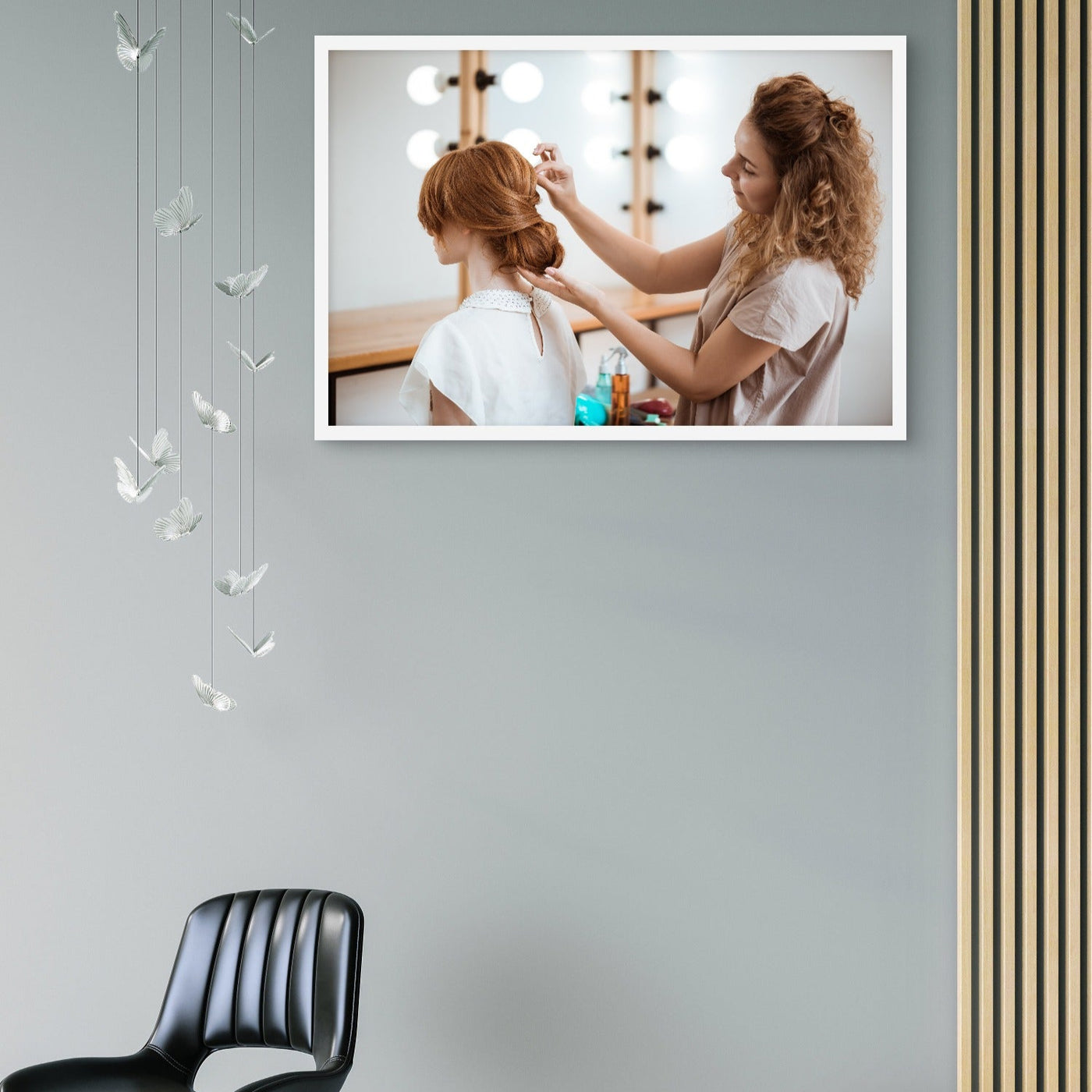 This Stylish Hair 30W x 24H inch Wall Décor Canvas Painting is an elegantly squared, framed canvas of engineered wood in a durable white finish. It only weighs 500g so it is not heavy and simple to hang. The canvas will modernize and add a stylish flair to any space in your house, salon, or studio.