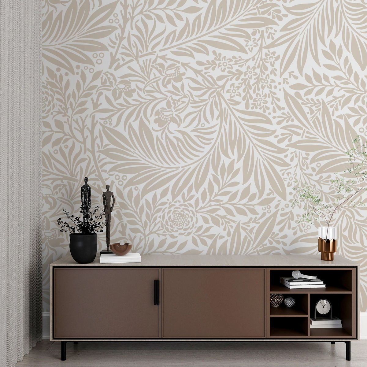 Our HD Digital Print Self-Adhesive Wallpaper is definitely going to make your solid wall stand out! With lovely brown leaf patterns on a white background in an appealing rectangular landscape design, this wallpaper will add a natural and sophisticated element to your chosen room. Super easy peel-and-stick installation, durable material, low maintenance, and available in multiple sizes to ensure that you have the perfect fit.