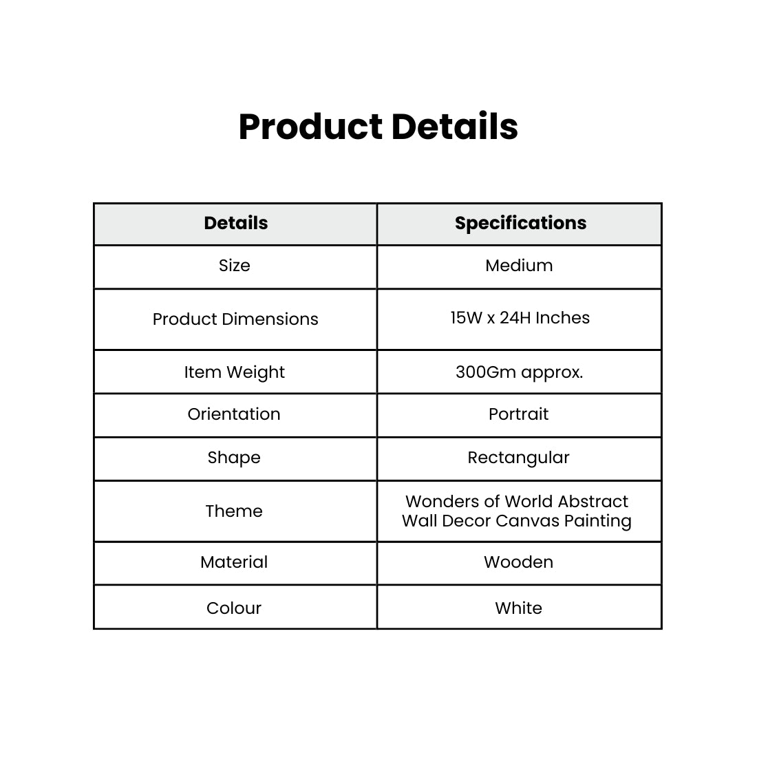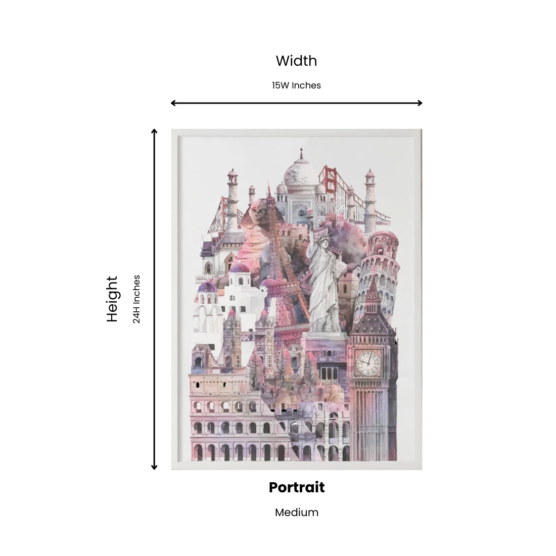 The Wonders of World Abstract Wall Decor Canvas Painting is a perfect combination of art and sophistication for your interior. At 15W x 24H inches in portrait orientation, it features a durable engineered wood frame in a simple white finish. The quality canvas printing has strong details in a modern styled décor.