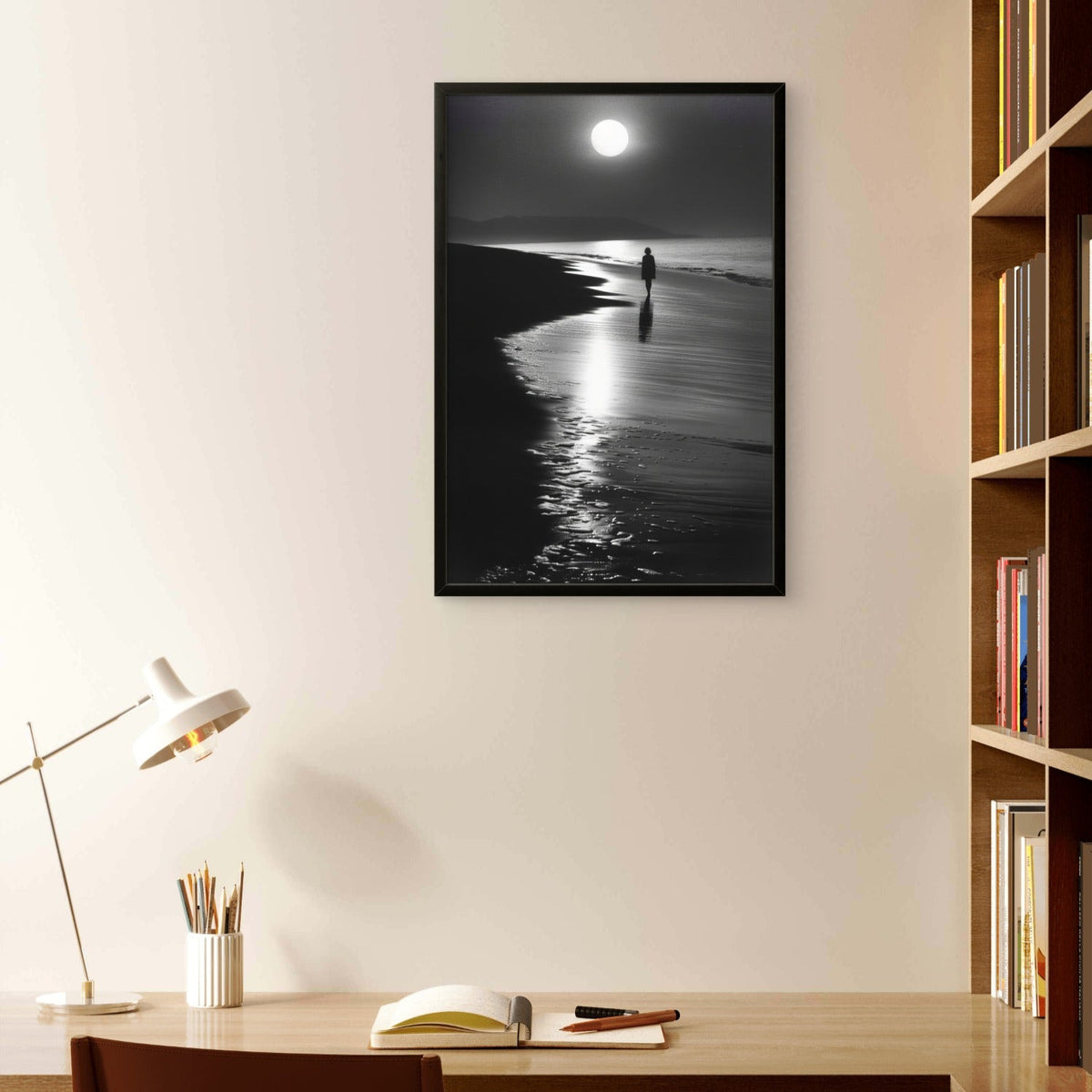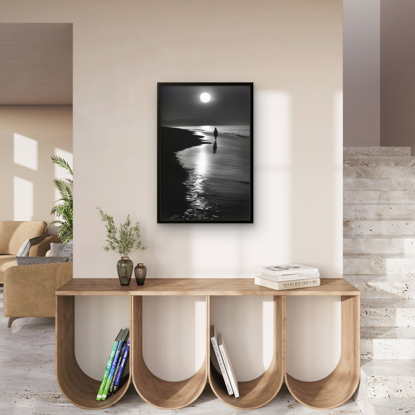 This large portrait wall art measures 18W by 24H inches and has a dark, abstract theme. It is ideal for homes or offices because it adds elegance and artistic depth to modern interiors when printed with fine precision on premium canvas and framed in sleek black engineered wood.