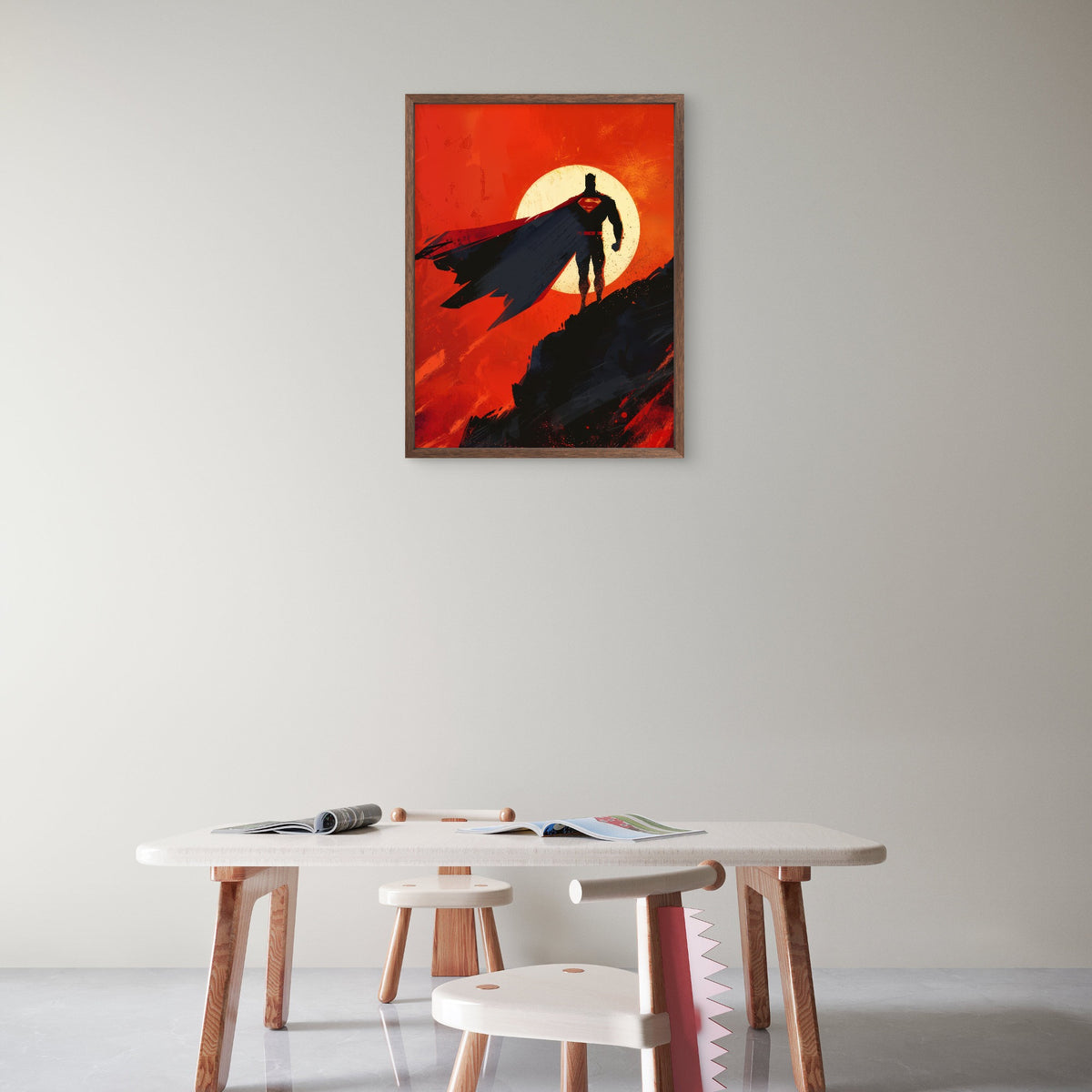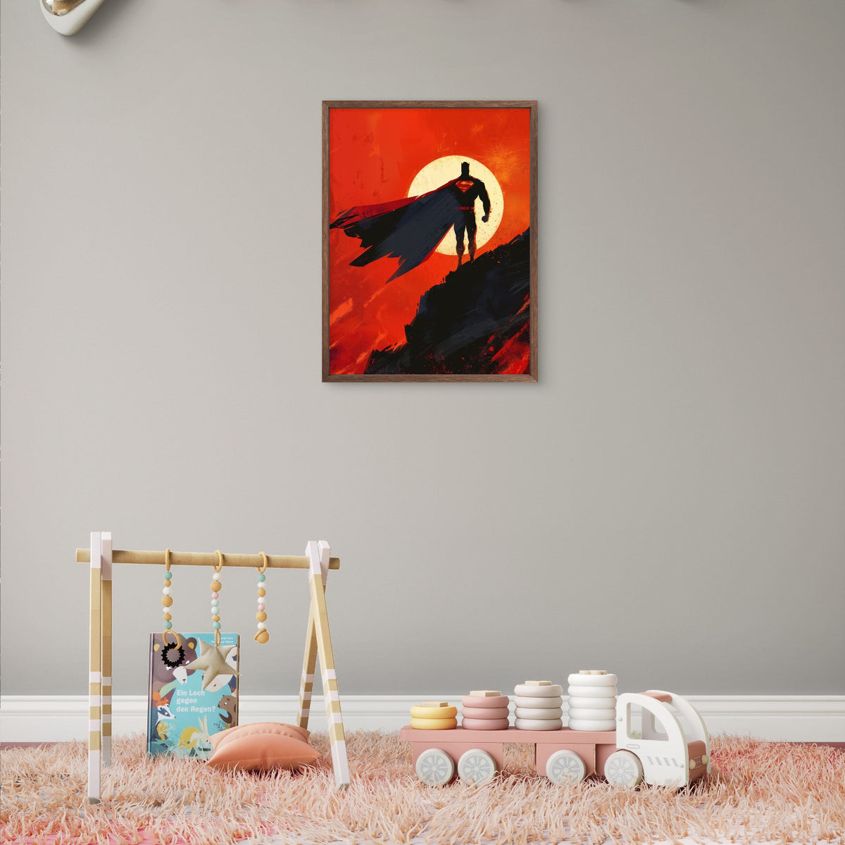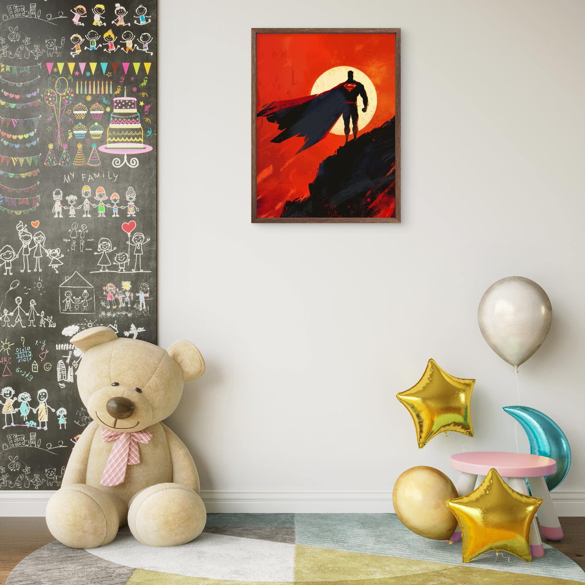 This Medium, 18x24 inch rectangular, canvas features a playful SuperHero Abstract design that adds a nice bold dynamic impression in any room. Framed, as all of our canvas are, in a natural wood frame with a warm wood finish in premium printing, and weighs approximately 500 grams. The canvas is perfect for bedrooms, playrooms or offices, radiating glad, modern artistry.